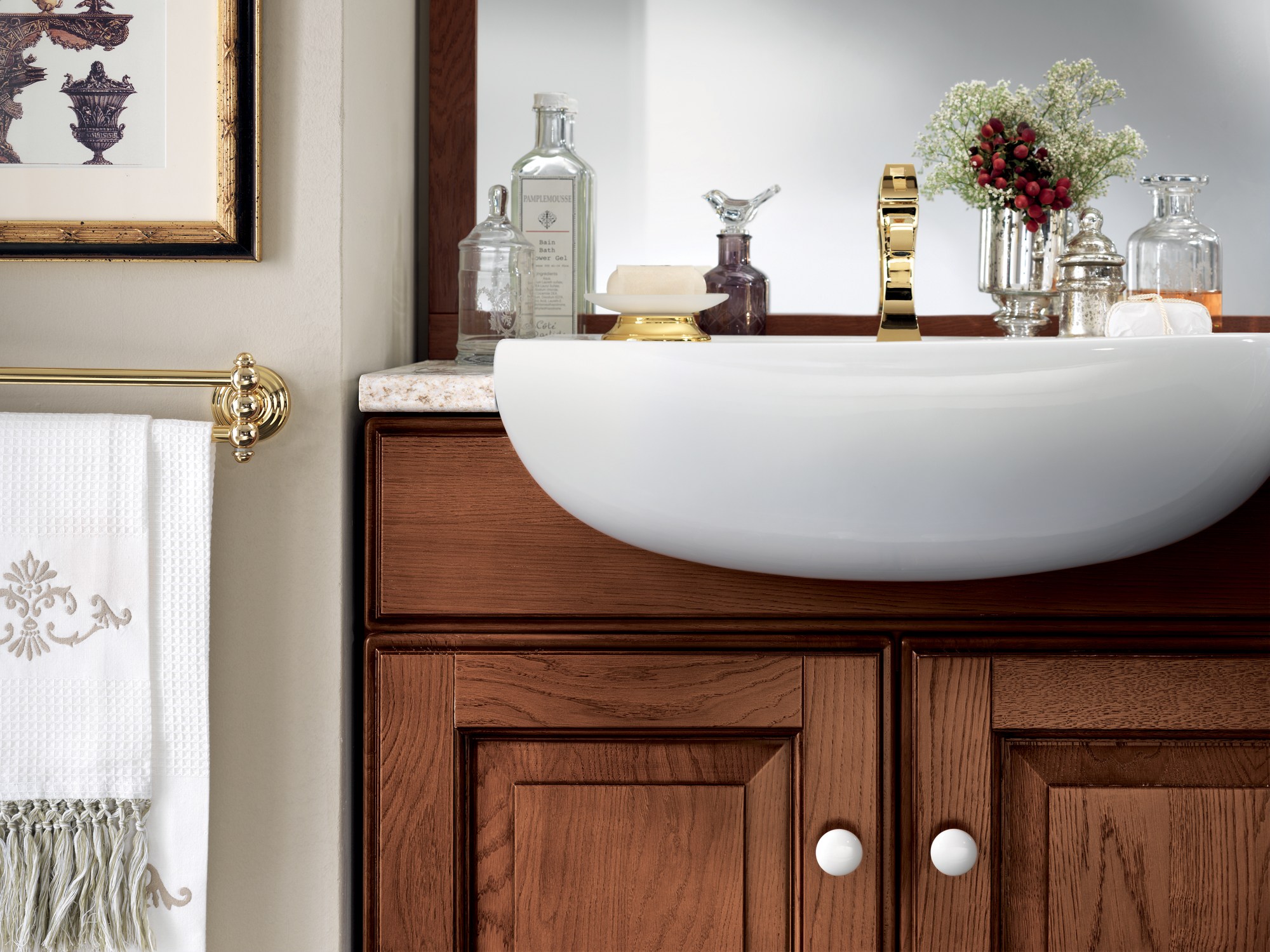 O bucatarie mare, cu linii rotunjite, care joacă pe contrastul dintre partea superioară, cu lumina, imaginea aproape agățată și cadrul solid, robust.